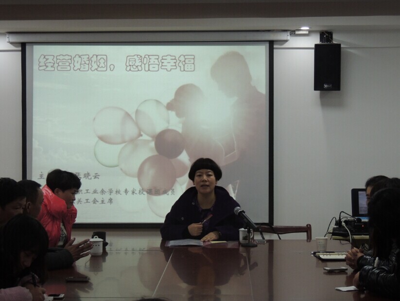 2015年1月14日晚,马鞍山市花山区直机关工会主席、马鞍山市女职工业余学校专家授课团成员张晓云老师来到我公司大讲堂,为包括董事长在内的公司管理人员开展了一场别开生面的讲座。此次讲课的主题是《经营婚姻,感悟幸福》。