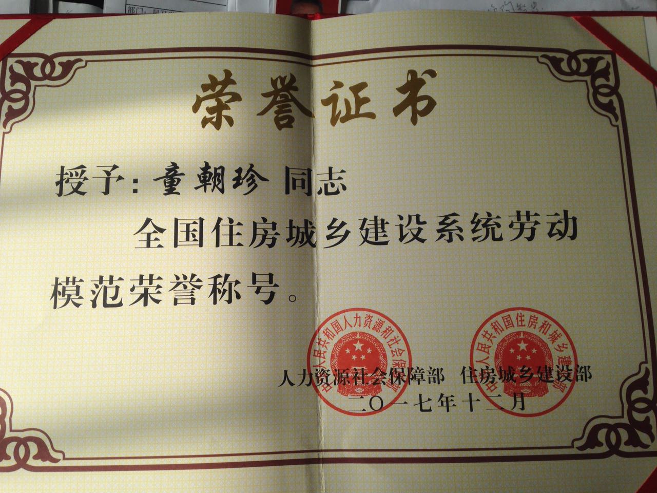 事迹简介:童朝珍,马鞍山市金太阳物业管理有限公司恒兴路公厕管理员。19年来她把工作当事业干,干一行、爱一行。她主动优化服务,在自身收入微薄的情况下仍然自掏腰包,为如厕者精心配置了拖鞋和地毯,在公厕里提供独具特色的“星级服务”。她获得过“2014年第三季度马鞍山好人”、“2013-2014年度马鞍山十佳道德模范”、“2014年度马鞍山市十大新闻人物”、“马鞍山市三八红旗手”,今年11月再次获得“全国住房和城乡系统劳动模范”称号。